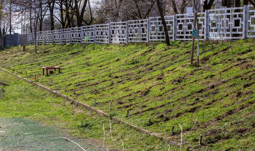 Au fost plantați arbori precum stejari, frasini, paltini și tei, precum și arbuști din speciile lemn-câinesc, corn și măceș, adaptați condițiilor climatice locale și care necesită întreținere redusă.