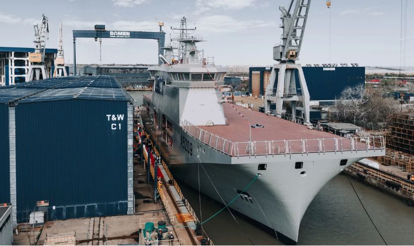 Galați: Prima navă multirol din Europa cu capabilități de operare a dronelor, lansată la apă